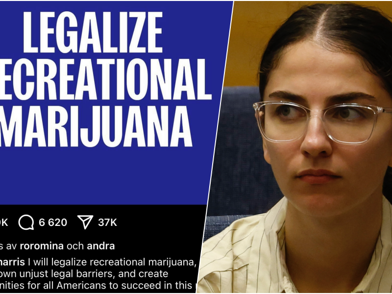 ▸ Miljöminister Romina Pourmokhtari (L) gillar ett inlägg av Kamala Harris om att legalisera marijuana.