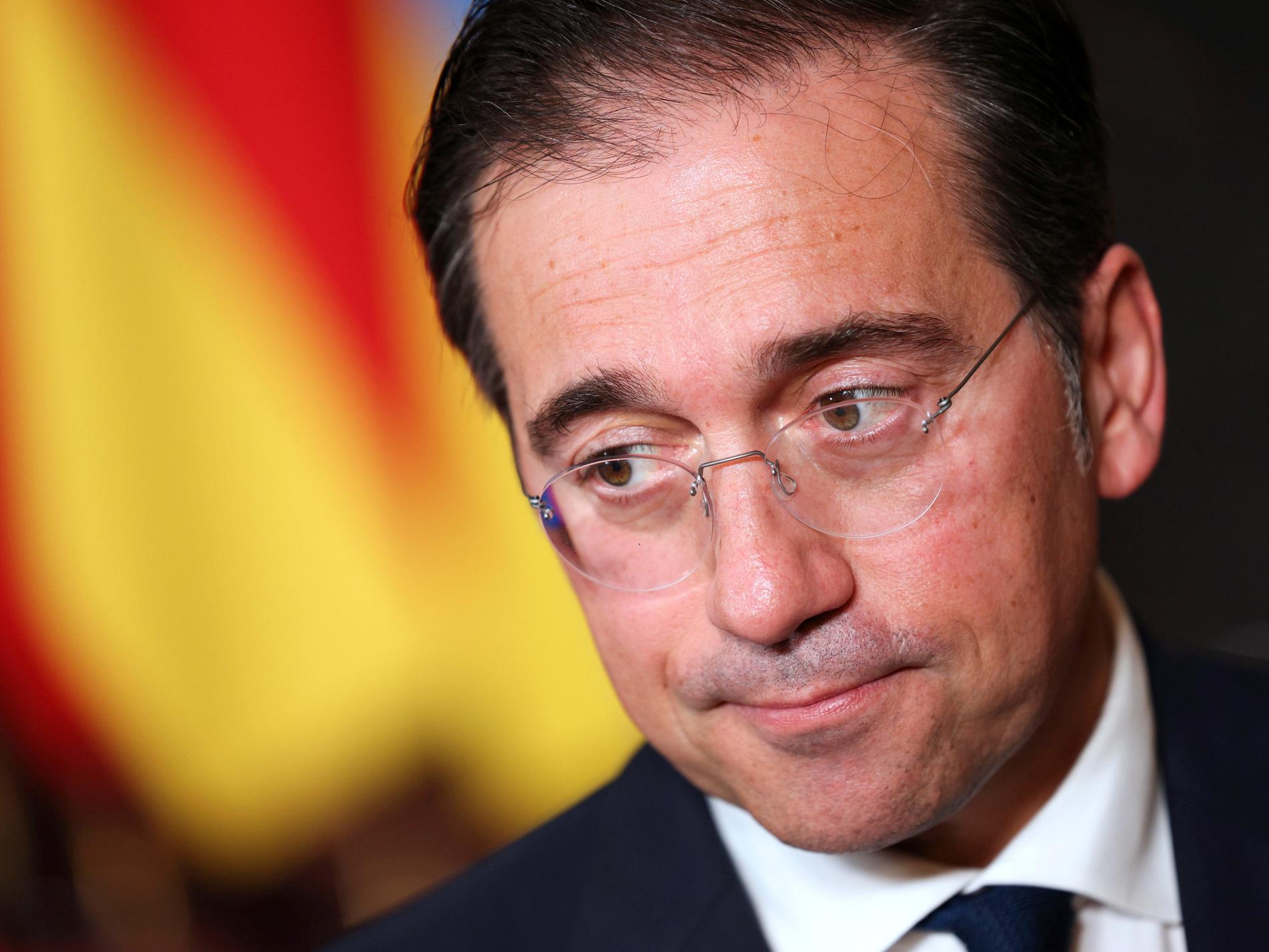 Spaniens utrikesminister José Manuel Albares vill se ett vapenembargo mot Israel för att få ett slut på kriget i Gaza.